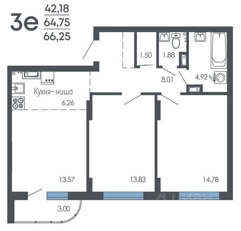 Общая площадь66,25 м²