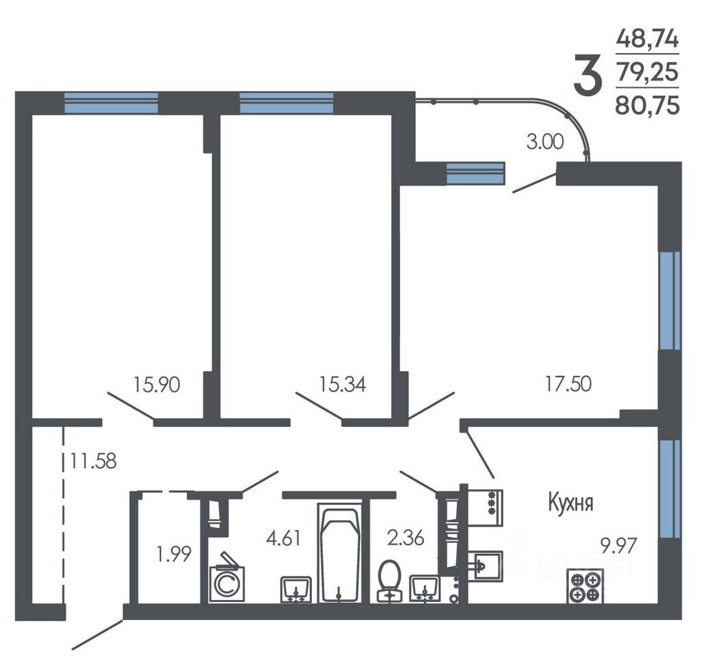 Продаётся 3-комнатная квартира в строящемся доме (Дом 1, дом 2), срок сдачи: I-кв. 2027, общей площадью 80.75 кв.м., на 2 этаже. Новый жилой комплекс от группы компаний "Проект Инвест" расположен по адресу: г. Воронеж, по ул. Шишкова.