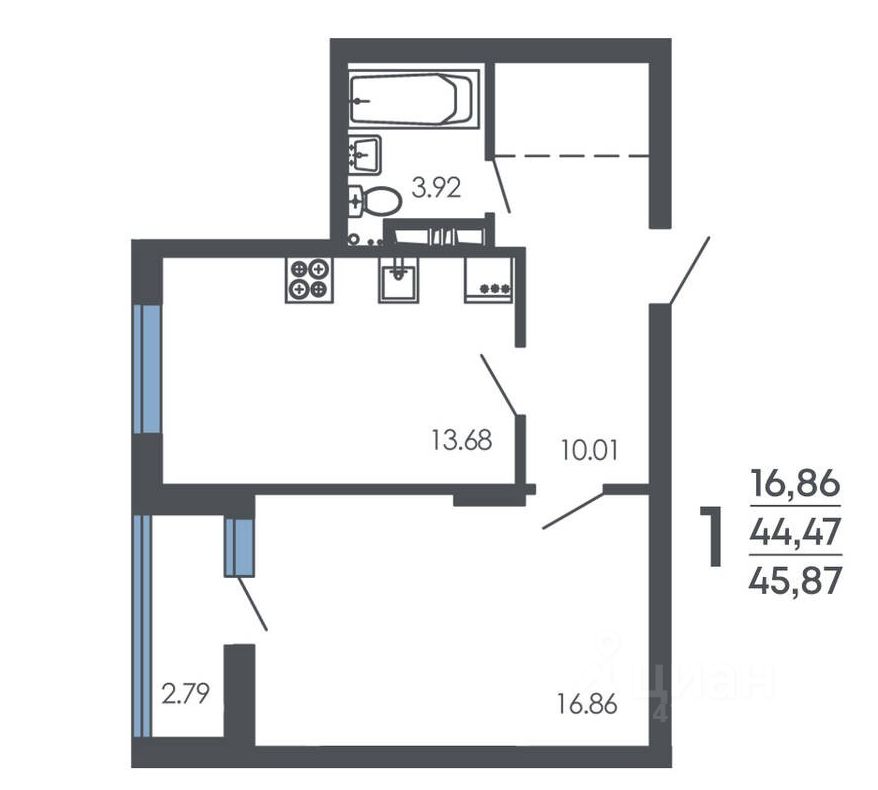 Продаётся 1-комнатная квартира в строящемся доме (Дом 1, дом 2), срок сдачи: I-кв. 2027, общей площадью 45.87 кв.м., на 6 этаже. Новый жилой комплекс от группы компаний "Проект Инвест" расположен по адресу: г. Воронеж, по ул. Шишкова.