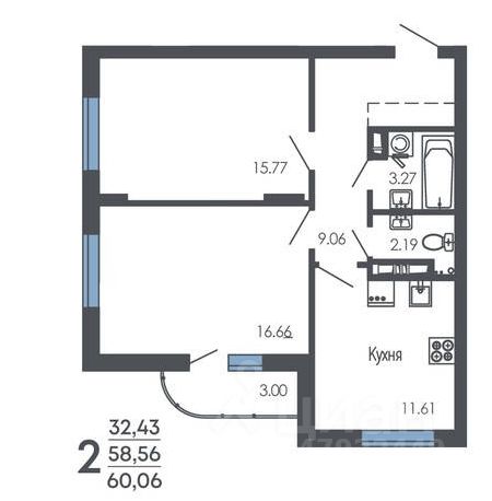Продаётся 2-комнатная квартира в строящемся доме (Дом 1, дом 2), срок сдачи: I-кв. 2027, общей площадью 60.06 кв.м., на 7 этаже. Новый жилой комплекс от группы компаний "Проект Инвест" расположен по адресу: г. Воронеж, по ул. Шишкова.
