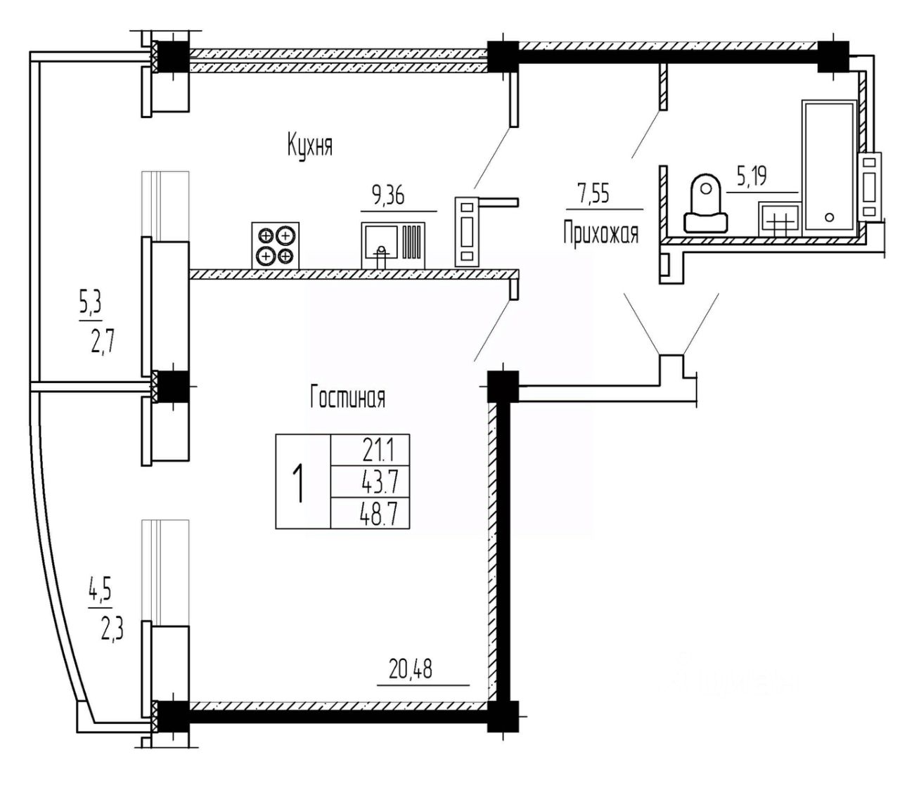 Продаётся 1-комнатная квартира в сданном доме (Лётчика Филипова, 4 (позиция 3)), срок сдачи: IV-кв. 2024, общей площадью 48.7 кв.м., на 12 этаже. Расположение, транспортная доступность