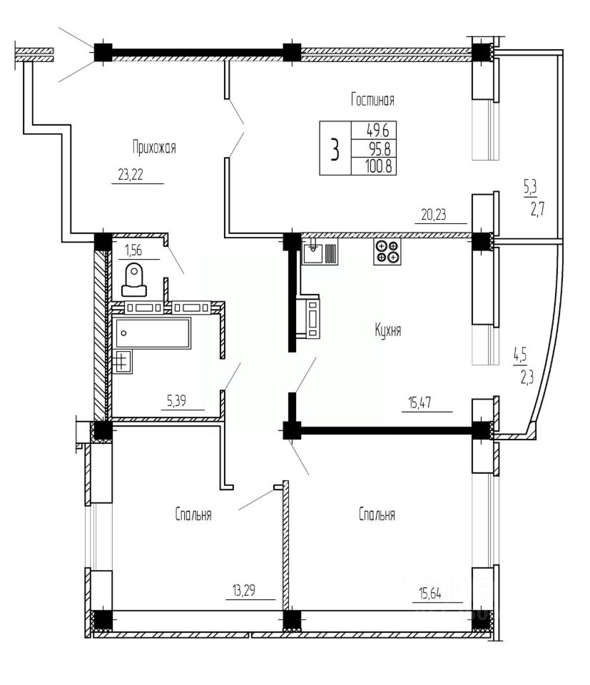 Продаётся 3-комнатная квартира в сданном доме (Лётчика Филипова, 4 (позиция 3)), срок сдачи: IV-кв. 2024, общей площадью 100.8 кв.м., на 10 этаже. Расположение, транспортная доступность