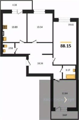 Квартира: 3 к 88,15 кв.м., 3 этаж в комплексе Александровский сад, 2 очередь, корп.1, сдача: 2кв. , этажей: 4, адрес Александровка село, Акварельная ул., , Застройщик: Еврострой.