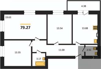 Квартира: 3 к 79,27 кв.м., 3 этаж в комплексе Александровский сад, 2 очередь, корп.3, сдача: 2кв. , этажей: 4, адрес Александровка село, Акварельная ул., , Застройщик: Еврострой.