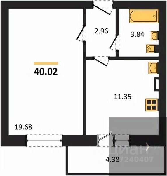 Квартира: 1 к 40,02 кв.м., 2 этаж в комплексе Александровский сад, 2 очередь, корп.4, сдача: 2кв. , этажей: 4, адрес Александровка село, Акварельная ул., , Застройщик: Еврострой.
