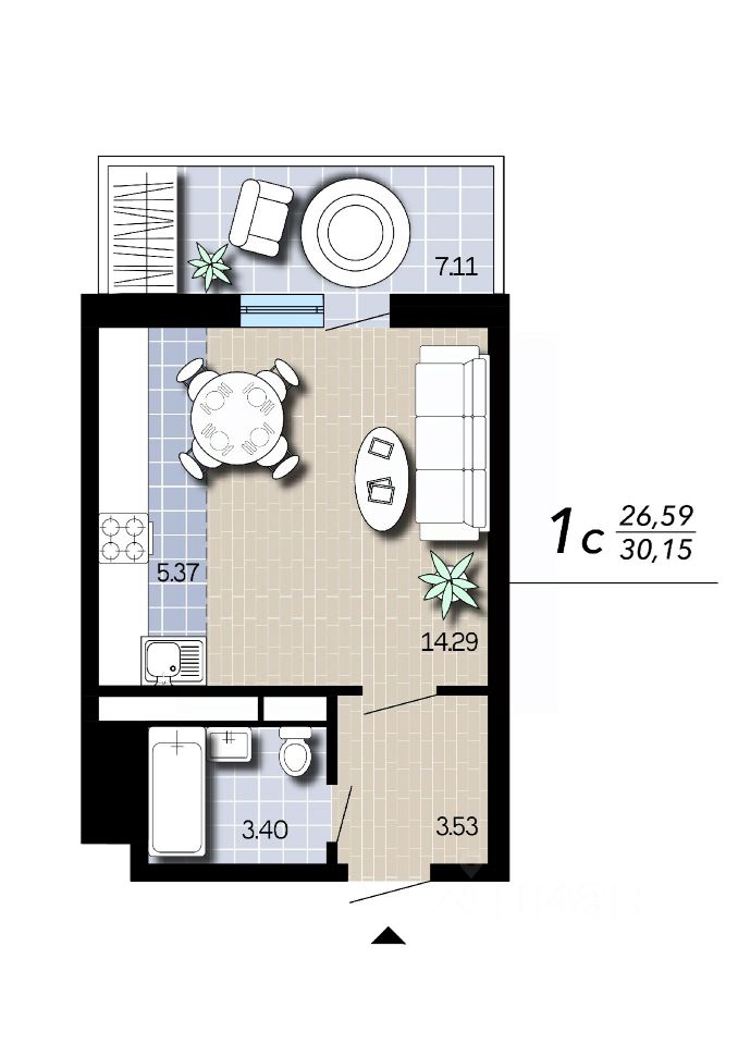 Продается квартира-студия общей площадью 30,15 м², от Застройщика. Большая лоджия, монолитный каркас, стены- кирпич и ГСБ. Возможно выполнение отделки Застройщиком (чистовая и предчистовая). В продаже есть кладовые от 3 до 9 м². Развитая транспортная инфраструктура, рядом детский сад, школа и другие социальные объекты. 5 минут на авто до центра города, в пешей доступности парк "Патриотов", парк "Алые паруса", зоопарк им.Попова.