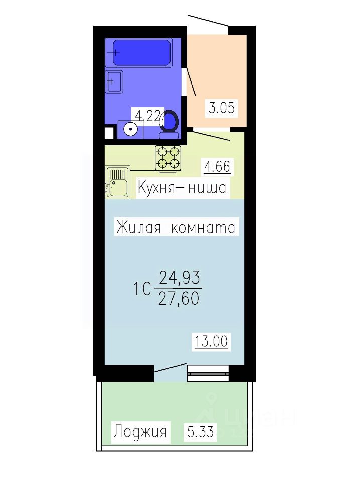Продается квартира-студия общей площадью 27,6 м², от Застройщика. Большая лоджия, монолитный каркас, стены- кирпич и ГСБ. Возможно выполнение отделки Застройщиком (чистовая и предчистовая). В продаже есть кладовые от 3 до 9 м².