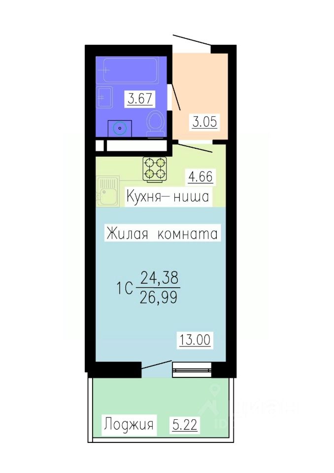 Продается квартира-студия общей площадью 26,99 м², от Застройщика. Большая лоджия, монолитный каркас, стены- кирпич и ГСБ. Возможно выполнение отделки Застройщиком (чистовая и предчистовая). В продаже есть кладовые от 3 до 9 м².