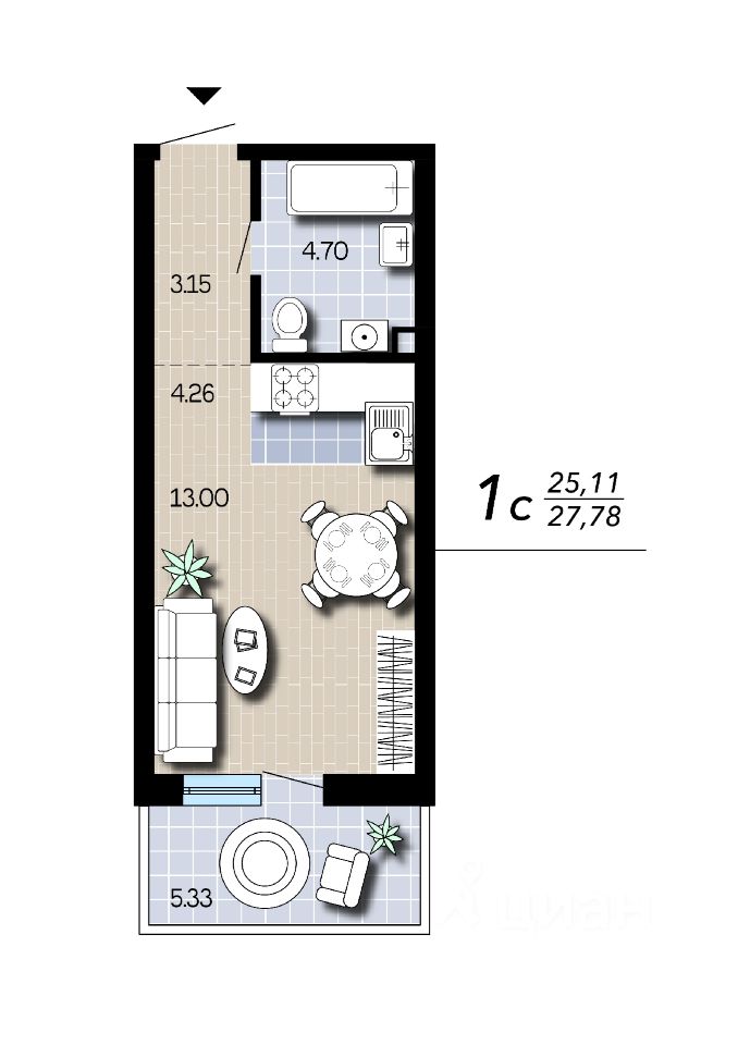 Продается квартира-студия общей площадью 27,78 м², от Застройщика. Большая лоджия, монолитный каркас, стены- кирпич и ГСБ. Возможно выполнение отделки Застройщиком (чистовая и предчистовая). В продаже есть кладовые от 3 до 9 м².