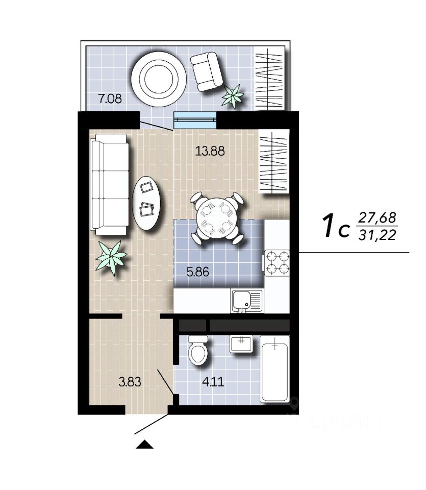Продается квартира-студия общей площадью 31,22 м², от Застройщика. Большая лоджия, монолитный каркас, стены- кирпич и ГСБ. Возможно выполнение отделки Застройщиком (чистовая и предчистовая). В продаже есть кладовые от 3 до 9 м².