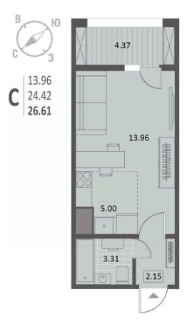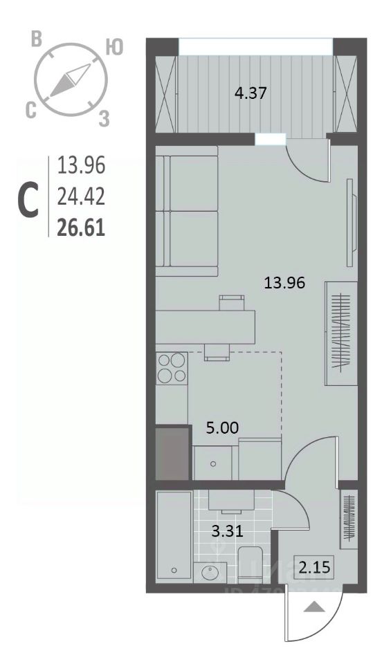 Продаётся студия в строящемся доме (Дом 72), срок сдачи: IV-кв. 2025, общей площадью 26.61 кв.м., на 5 этаже. Жилой комплекс расположен в Ленинском районе Воронежа, в 5 минутах от Цирка, на пересечении улиц Краснознаменная и Чапаева. В шаговой доступности школа и детские сады, а на первом этаже жилого дома предусмотрено помещение под продуктовый супермаркет и другие коммерческие площади.
