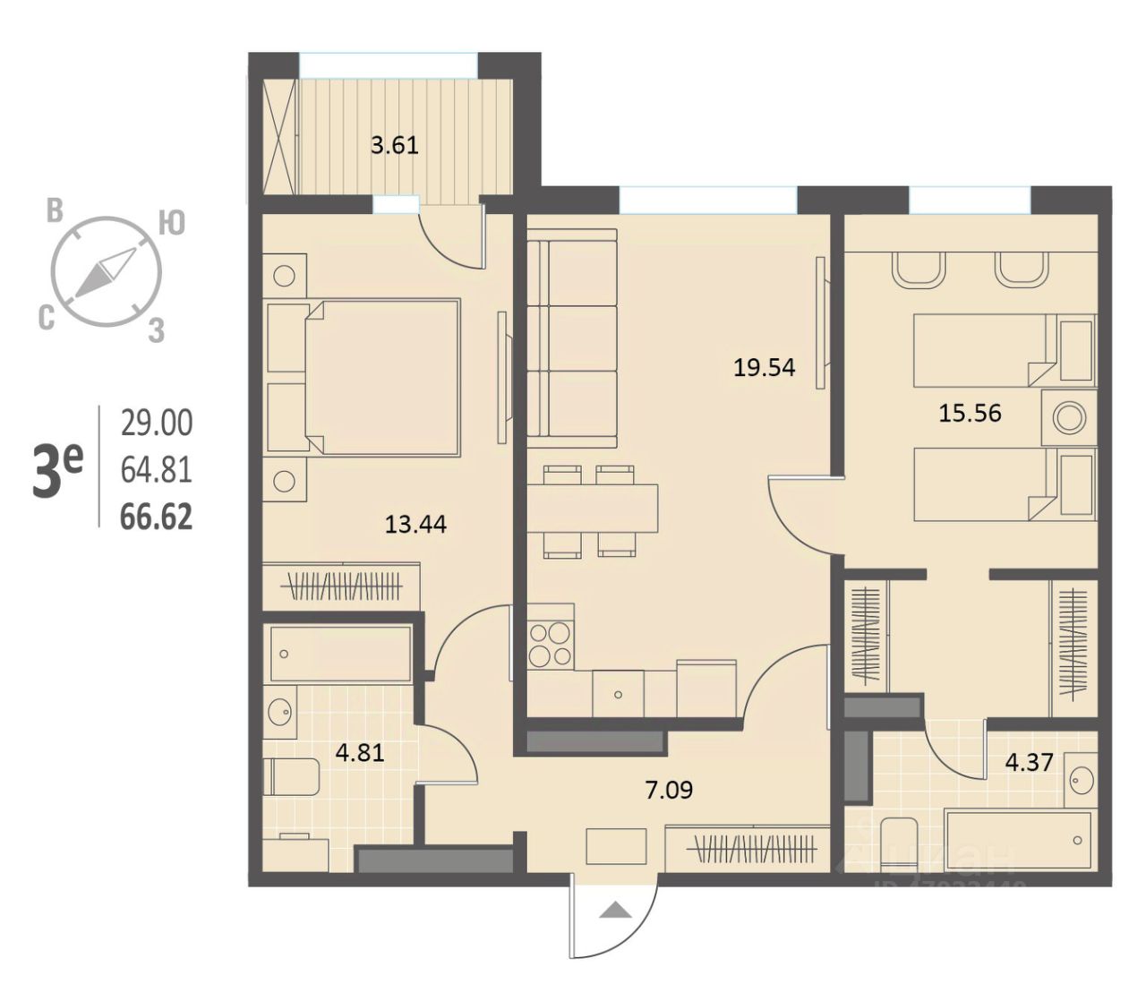 Продаётся 2-комнатная квартира в сданном доме (Краснознамённая, 72), срок сдачи: IV-кв. 2025, общей площадью 66.62 кв.м., на 5 этаже. Жилой комплекс расположен в Ленинском районе Воронежа, в 5 минутах от Цирка, на пересечении улиц Краснознаменная и Чапаева. В шаговой доступности школа и детские сады, а на первом этаже жилого дома предусмотрено помещение под продуктовый супермаркет и другие коммерческие площади.