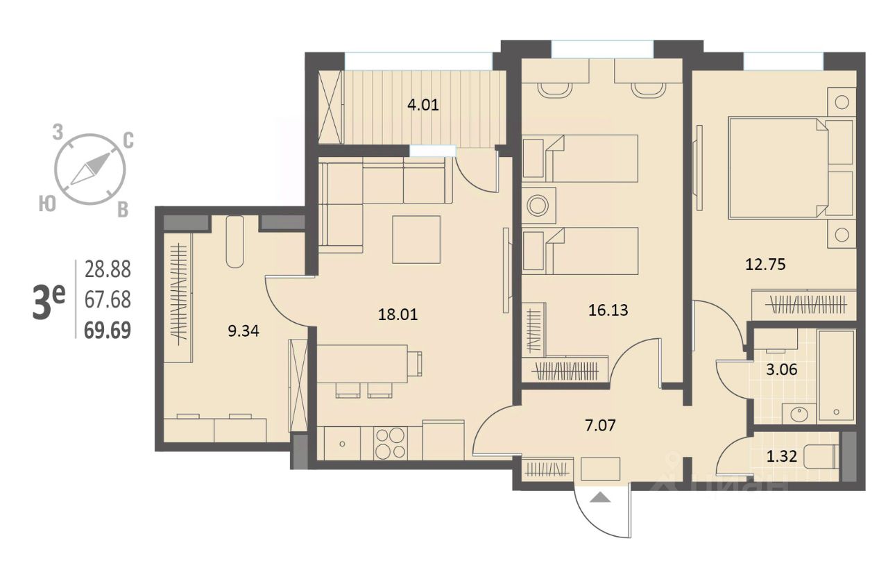 Продаётся 2-комнатная квартира в строящемся доме (Дом 72), срок сдачи: IV-кв. 2025, общей площадью 69.8 кв.м., на 5 этаже. Жилой комплекс расположен в Ленинском районе Воронежа, в 5 минутах от Цирка, на пересечении улиц Краснознаменная и Чапаева. В шаговой доступности школа и детские сады, а на первом этаже жилого дома предусмотрено помещение под продуктовый супермаркет и другие коммерческие площади.