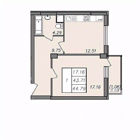Продаётся 1-комнатная квартира в сданном доме (Волгоградская, 45 (Секция 4)), срок сдачи: IV-кв. 2023, общей площадью 44.79 кв.м., на 11 этаже. Новый жилой комплекс "Свой дом" от Специализированного застройщика ООО "Свой дом" расположен по адресу: г. Воронеж, по ул. Волгоградская.