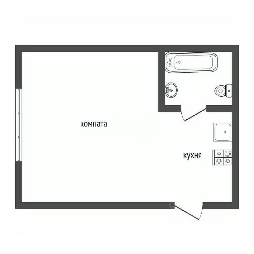 -общая площадь квартиры-17.9 м2. Сан узел совмещенный, расположен внутри комнаты. Балкон отсутствует.