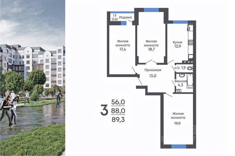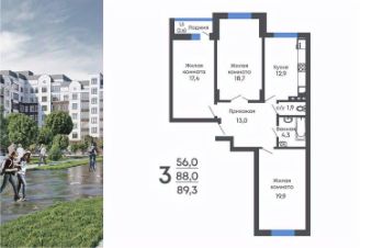 Продаётся 3-комнатная квартира в строящемся доме (Позиция 2), срок сдачи: II-кв. 2026, общей площадью 89.3 кв.м., на 5 этаже. Новый жилой комплекс от Специализированного застройщика "АВА" расположен по адресу: р.п. Рамонь, по ул. Ю. Фучика.