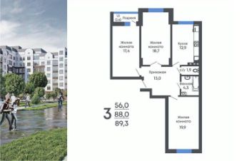 Продаётся 3-комнатная квартира в строящемся доме (Позиция 2), срок сдачи: II-кв. 2026, общей площадью 89.3 кв.м., на 6 этаже. Новый жилой комплекс от Специализированного застройщика "АВА" расположен по адресу: р.п. Рамонь, по ул. Ю. Фучика.