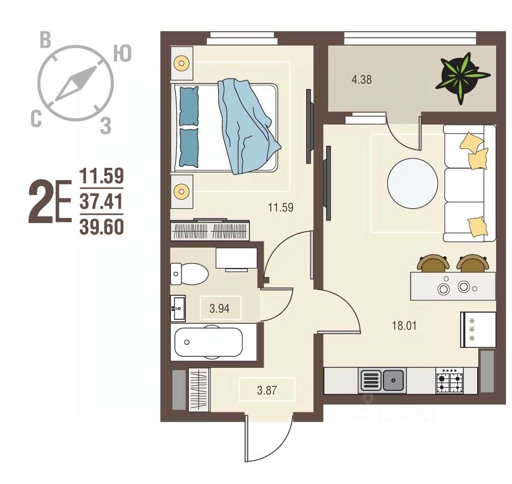 Продаётся 1-комнатная квартира в сданном доме (Позиция 12), срок сдачи: I-кв. 2025, общей площадью 39.6 кв.м., на 3 этаже. О ПРОЕКТЕ