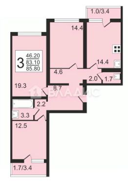 - Просторная планировка: три изолированные комнаты, две лоджии, просторная кухня 13,4м, кладовая.