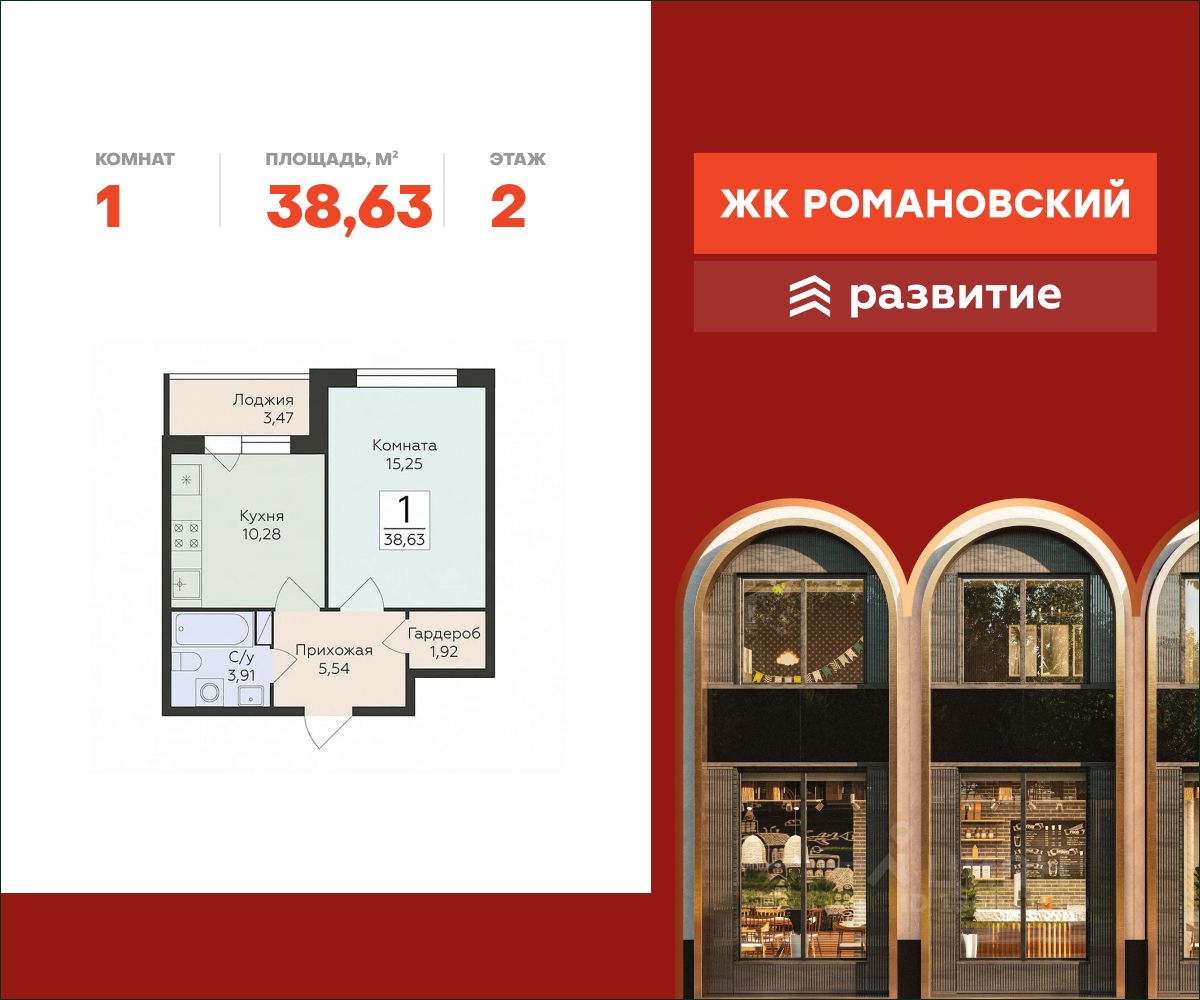 В продаже квартира площадью 38.63 кв. м с черновой отделкой. Квартира расположена на 2 этаже 14 этажного дома, в жилом комплексе "комфорт плюс" класса "Романовский".