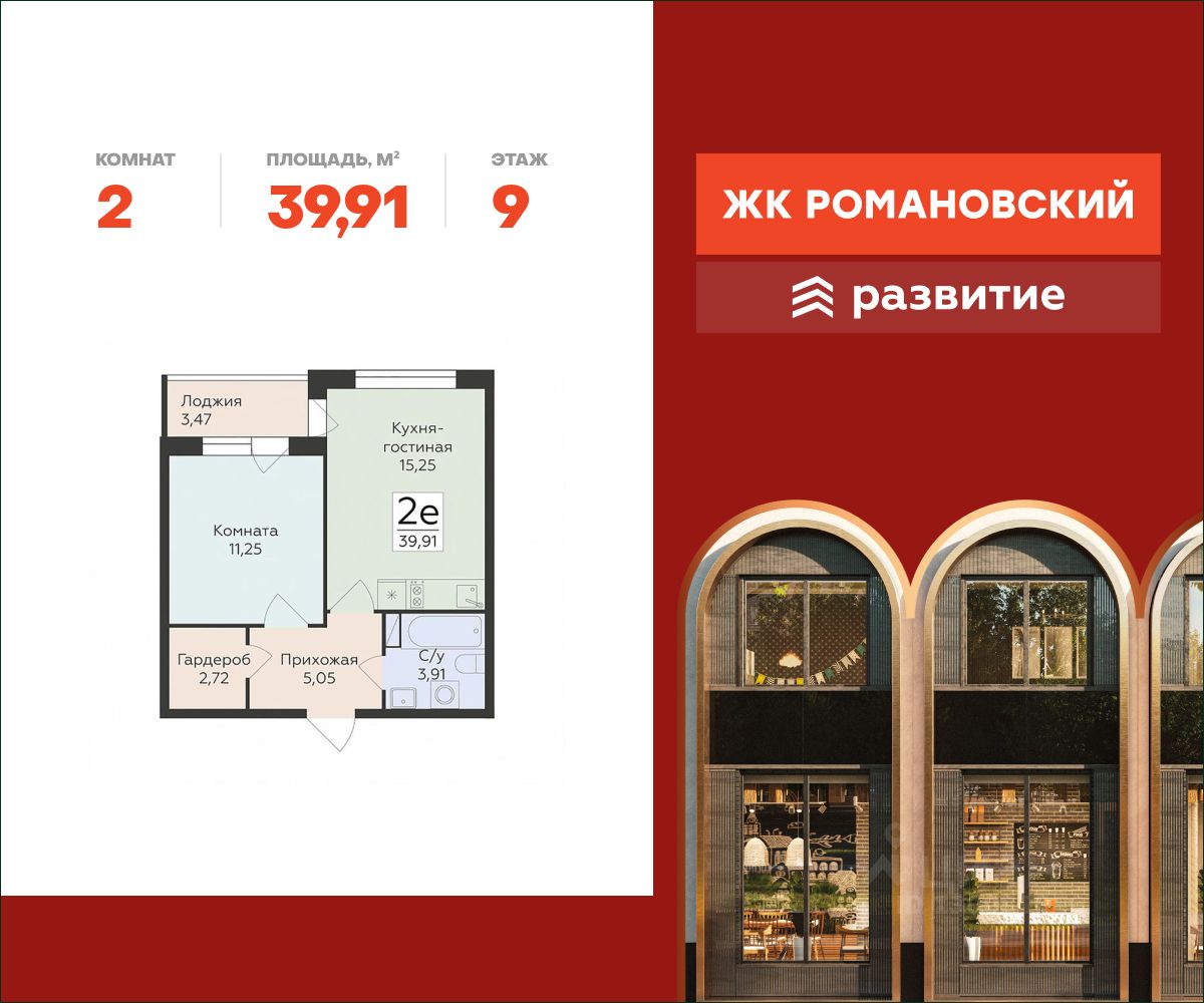 В продаже квартира площадью 39.91 кв. м с черновой отделкой. Квартира расположена на 9 этаже 14 этажного дома, в жилом комплексе "комфорт плюс" класса "Романовский".