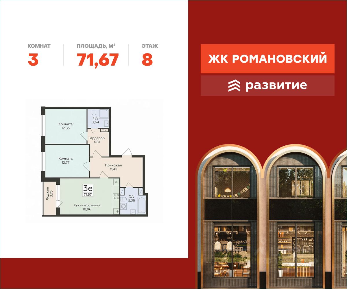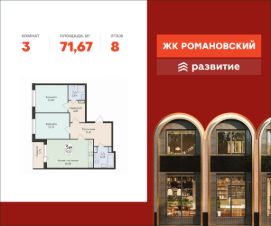 В продаже квартира площадью 71.67 кв. м с черновой отделкой. Квартира расположена на 8 этаже 18 этажного дома, в жилом комплексе "комфорт плюс" класса "Романовский".