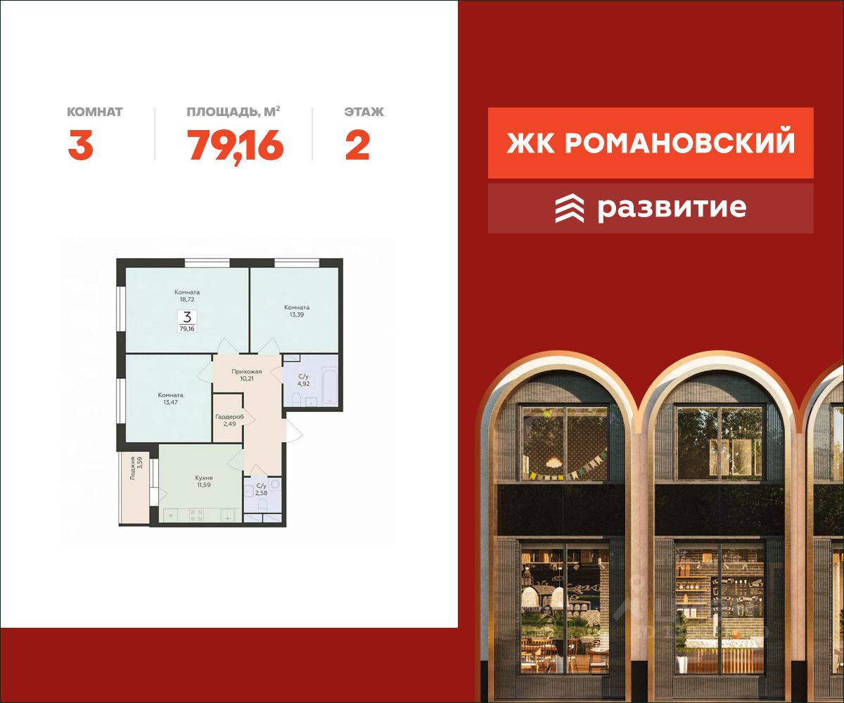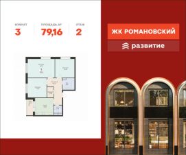 В продаже квартира площадью 79.16 кв. м с черновой отделкой. Квартира расположена на 2 этаже 12 этажного дома, в жилом комплексе "комфорт плюс" класса "Романовский".