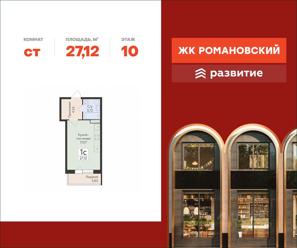 В продаже квартира площадью 27.12 кв. м с черновой отделкой. Квартира расположена на 10 этаже 14 этажного дома, в жилом комплексе "комфорт плюс" класса "Романовский".