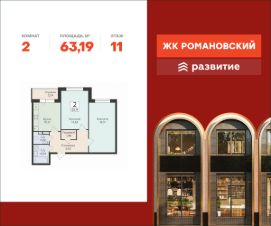В продаже квартира площадью 63.19 кв. м с черновой отделкой. Квартира расположена на 11 этаже 16 этажного дома, в жилом комплексе "комфорт плюс" класса "Романовский".