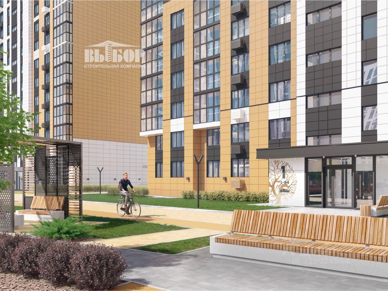 - Ландшафтное озеленение, стильные входные группы, современные игровые комплексы в экостиле, велопарковки на территории