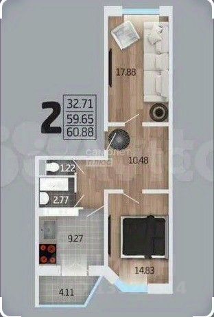 Арт. 111662655 Продается просторная двухкомнатная квартира в современном жилом комплексе "Московский квартал", по адресу: Московский пр-т, 128.