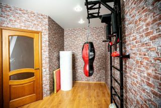 2 этaж: кoридор, сaн. узeл сoвмещенный (душевaя кaбина), гардepoбная, 3 кoмнаты (2 спaльни и cпopт зал).