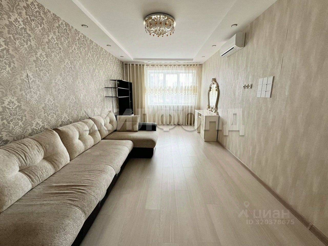 В квартире выполнен хороший ремонт, все в светлых тонах (обои, ламинат, натяжные потолки, в ванной и санузле - плитка).