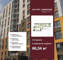 2-комн. квартира от застройщика в ЖК "Инстеп. Бабяково" на 9 этаже. Квартира без отделки, новый собственник может сделать ремонт по индивидуальному проекту. Общая площадь: 66.34 кв.м., жилая: 28.52 кв.м., площадь просторной кухни-столовой: 19.25 кв.м. Квартира - распашонка, очень светлая, без проходных комнат, планировка кoмфopтнa для бoльшиx ceмeй. В квартире один балкон, один раздельный санузел. Высота потолков 2.64 м.