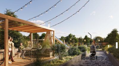 В "Инстеп.Краснознаменная" будет закрытая территория с двухуровневой парковкой во дворе. Для детской площадки предусмотрены игровые комплексы из натурального дерева в эко-стиле с большими горками. Во дворе новостройки будет трехуровневое освещение и гирлянды над пешеходным тротуаром.