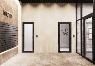 Вход в подъезды  с уровня земли. Улучшенная отделка подъездов и межквартирных коридоров по дизайн-проекту. Установлены лифты Метеор (экс-ОТIS) с индивидуальным дизайном. В каждом подъезде на первом этаже расположены колясочные и санузлы.
