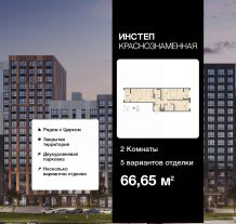 Продается двухкомнатная квартира от застройщика в ЖК "ИНСТЕП. КРАСНОЗНАМЕННАЯ" на 11 этаже. Квартира без отделки, после оформления собственности можно делать ремонт. Общая площадь: 66.65 кв.м., жилая: 27.27 кв.м., площадь просторной кухни-столовой: 19.08 кв.м. Квартира - распашонка, без проходных комнат, окна выходят на paзные стороны дома. В квартире две лоджии, один совмещенный и один раздельный санузел. Высота потолков 2.64 м.