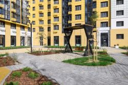 - Ландшафтное озеленение, стильные входные группы, современные игровые комплексы в экостиле, велопарковки на территории