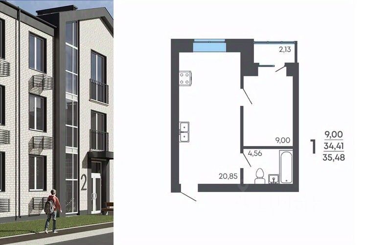 Продаётся 1-комнатная квартира в сданном доме (Маяковского, 53/2 (Дом 2 (4 этап))), срок сдачи: III-кв. 2025, общей площадью 35.48 кв.м., на 1 этаже. Новый жилой комплекс "Славяноград" от Специализированного застройщика "ЖБИ-ЖИЛСТРОЙ 36" расположен в г. Семилуки Воронежской области на ул. Маяковского.
