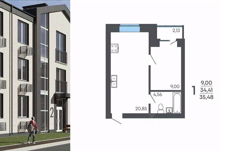 Продаётся 1-комнатная квартира в сданном доме (Маяковского, 53/2 (Дом 2 (4 этап))), срок сдачи: III-кв. 2025, общей площадью 35.48 кв.м., на 2 этаже. Новый жилой комплекс "Славяноград" от Специализированного застройщика "ЖБИ-ЖИЛСТРОЙ 36" расположен в г. Семилуки Воронежской области на ул. Маяковского.