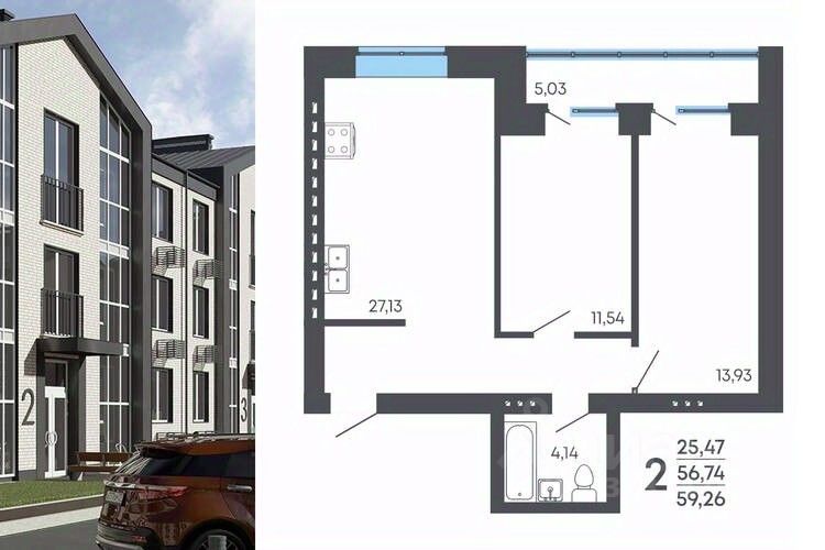 Продаётся 2-комнатная квартира в сданном доме (Маяковского, 53/2 (Дом 2 (4 этап))), срок сдачи: III-кв. 2025, общей площадью 59.26 кв.м., на 3 этаже. Новый жилой комплекс "Славяноград" от Специализированного застройщика "ЖБИ-ЖИЛСТРОЙ 36" расположен в г. Семилуки Воронежской области на ул. Маяковского.