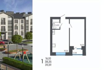 Продаётся 1-комнатная квартира в сданном доме (Маяковского, 53 (Дом 1 (4 этап))), срок сдачи: III-кв. 2025, общей площадью 39.39 кв.м., на 2 этаже. Новый жилой комплекс "Славяноград" от Специализированного застройщика "ЖБИ-ЖИЛСТРОЙ 36" расположен в г. Семилуки Воронежской области на ул. Маяковского.