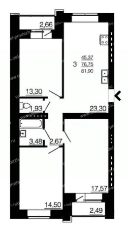 Продаётся 3-комнатная квартира в сданном доме (Маяковского, 45 (Позиция 1 (3 очередь))), срок сдачи: IV-кв. 2023, общей площадью 75.4 кв.м., на 1 этаже. Новый жилой комплекс "Славяноград" от Специализированного застройщика "ЖБИ-ЖИЛСТРОЙ 36" расположен в г. Семилуки Воронежской области на ул. Маяковского.