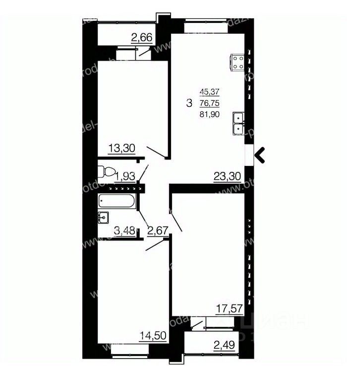 Продаётся 3-комнатная квартира в сданном доме (Маяковского, 45 (Позиция 3 (3 очередь))), срок сдачи: IV-кв. 2023, общей площадью 81.51 кв.м., на 1 этаже. Новый жилой комплекс "Славяноград" от Специализированного застройщика "ЖБИ-ЖИЛСТРОЙ 36" расположен в г. Семилуки Воронежской области на ул. Маяковского.