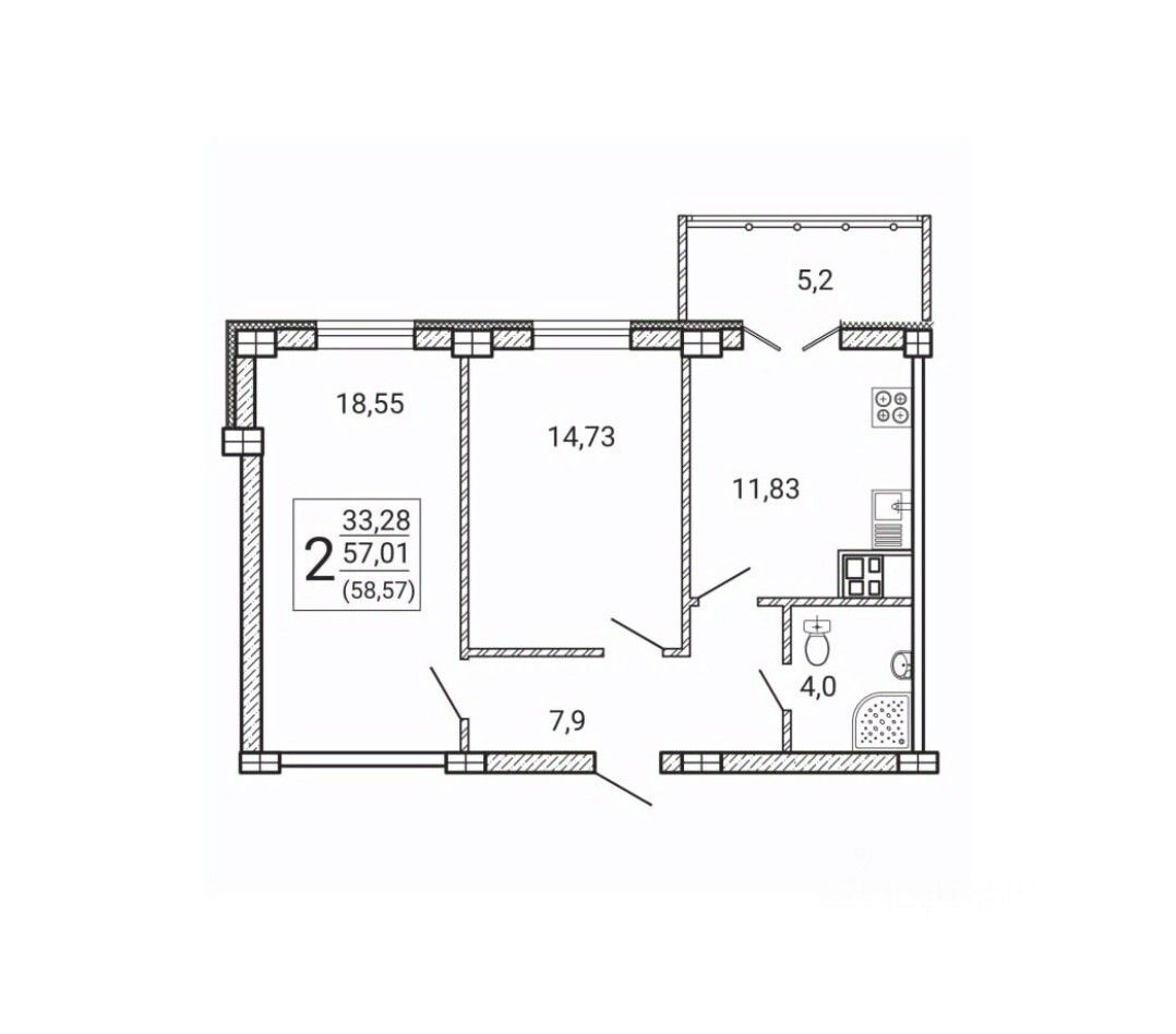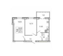 Продается 2-комн. квартира, 58,57 м²