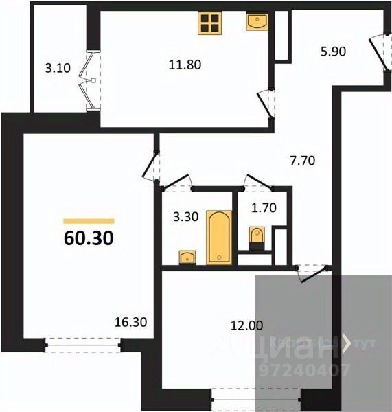 Квартира: 2 к 60,30 кв.м., 3 этаж в комплексе Ласточкино, 10 очередь, корп.35, сдача: 2кв. , этажей: 17, адрес Воронеж г., Полковника Богомолова ул., д. 3, Застройщик: ДСК.