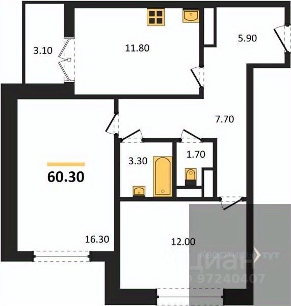 Квартира: 2 к 60,30 кв.м., 11 этаж в комплексе Ласточкино, 10 очередь, корп.35, сдача: 2кв. , этажей: 17, адрес Воронеж г., Полковника Богомолова ул., д. 3, Застройщик: ДСК.