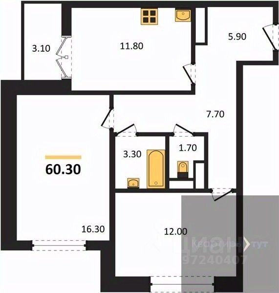 60,3 м²