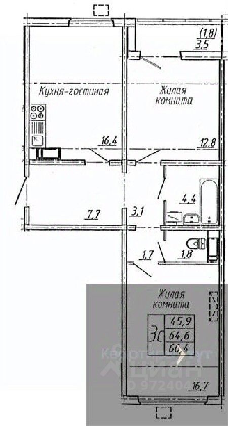 66,4 м²