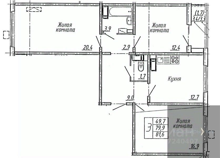 Квартира: 3 к 81,60 кв.м., 16 этаж в комплексе Яблоневые сады (ДСК), 1 очередь, корп.9, сдача: 2кв. , этажей: 19, адрес Воронеж г., Ломоносова ул., д. 129, Застройщик: ДСК.